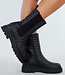 Diese schwarzen Chelseastiefel haben ein gewebtes Muster und eine klobige Sohle. Die elastischen Einsätze an den Seiten sorgen für eine bequeme Passform und erleichtern das An- und Ausziehen der Schuhe. Die Stiefel haben ein knöchelhohes Design und eine robuste Sohle mit Profil für zusätzlichen Halt. Die Ferse ist mit einer Schlaufe versehen, die das Anziehen erleichtert.