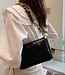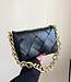 Diese Tasche hat ein großes Fach, das eine Menge Sachen aufnehmen kann. Die Tasche hat eine große Kette als Griff.