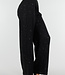 Diese schwarze Hose ist aus einem geschmeidigen Stoff mit Glitzerfinish gefertigt. Das Modell hat einen hohen, elastischen Bund und gerade, locker fallende Hosenbeine. Die Vorderseite ist mit Falten für einen schicken Fall und zwei praktischen Seitentaschen versehen. Der Stoff hat eine weiche Struktur mit leichtem Stretch.