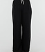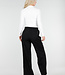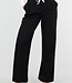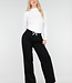 Schwarze Hose mit weitem Bein, weißem Bund und Schleifendetail