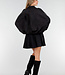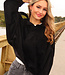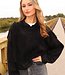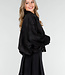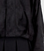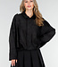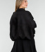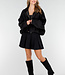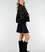 Diese schwarze Jacke ist aus einem weichen Stoff in Wildlederoptik gefertigt. Das Modell hat eine gerade, locker fallende Passform mit abgesenkten Schulternähten und langen Ärmeln. Der Verschluss an der Vorderseite besteht aus einem Reißverschluss und einem zusätzlichen Überwurf mit Knöpfen. An den Schultern sind Schulterklappen angebracht. Der Saum ist elastisch verarbeitet, sodass die Jacke schön an der Hüfte anliegt.