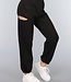 Diese Hose ist aus einem weichen Baumwollstoff mit Stretch gefertigt. Sie trägt sich sehr bequem und hat einen hohen Taillenschnitt. Die Jogginghose hat einen breiten Gummibund und zwei Seitentaschen auf der Vorderseite. Die Beine haben am Ende einen elastischen Saum, der sie etwas bauschiger macht. Diese Jogginghose hat einen Ausschnitt am rechten Oberschenkel.