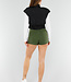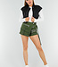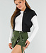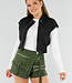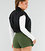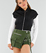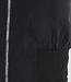 Diese schwarze Weste ist tailliert geschnitten und hat einen hohen Kragen. Der Frontverschluss besteht aus einem sichtbaren Reißverschluss. Die Weste ist ärmellos und hat leicht abgerundete Schulternähte. Der untere Teil ist mit einem breiten Gummibund versehen, der für eine gute Passform sorgt. Das Material ist glatt und leicht glänzend. Die Innenseite ist gefüttert.
