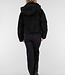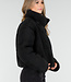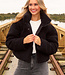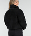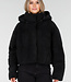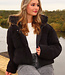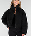 Diese schwarze Teddy-Pufferjacke ist aus weichem Fleece mit gesteppter Struktur gefertigt. Die Jacke hat einen hohen Kragen und eine abnehmbare Kapuze, die mit einem Reißverschluss befestigt oder abgenommen werden kann. Das kurze Modell reicht bis zur Taille und hat lange Ärmel. Die Jacke wird vorne mit einem Reißverschluss und zusätzlichen Druckknöpfen geschlossen. Gesteppte Bahnen sorgen für ein voluminöses und gleichmäßiges Finish. Am unteren Rand der Jacke befindet sich ein verstellbarer Kordelzug, mit dem der Saum enger gezogen werden kann.