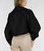Diese schwarze Windjacke ist kurz geschnitten und aus einem leicht strukturierten Stoff gefertigt. Die Jacke hat einen auffälligen breiten Kragen mit Druckknopf- und Reißverschluss, einen elastischen Saum mit Kordelzug und lange Ärmel mit Gummizug. Die Jacke ist mit zwei Seitentaschen auf der Vorderseite versehen. Dank des luftigen, aber robusten Stoffes ist diese Jacke perfekt für die Übergangszeit geeignet.
