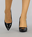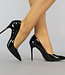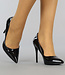 Schlüsselwörter: schwarze Lackpumps, Stiletto-Absätze in Lackoptik, spitze Spitze, edle High Heels