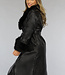 Diese schöne Jacke ist aus einem Stoff in Lederoptik gefertigt, der sie wasserabweisend macht. Sie hat einen Kragen aus Kunstfell und auf der Vorderseite zwei schräge Taschen. Der Pelzkragen kann mit kleinen Knöpfen abgenommen werden. Der Pelzbesatz an den Ärmeln ist nicht abnehmbar. Die Jacke wird mit einem Taillengürtel geliefert, den Sie auf verschiedene Weise um Ihre Taille binden können. Die Jacke lässt sich mit sechs Druckknöpfen leicht öffnen und schließen. Außerdem hat die Jacke Schnallendetails an den Ärmeln und ein herrlich warmes Futter.