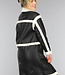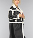 Diese schöne Jacke ist aus einem schwarzen Stoff in Lederoptik gefertigt, der wasserabweisend und wunderbar warm ist. Das Futter der Jacke besteht aus einem warmen Teddy-Stoff. Außerdem verfügt die Jacke über einen Teddykragen und zwei Seitentaschen. Auf der Vorderseite hat sie einen doppelten Knopfverschluss, der aus drei Knöpfen auf der Außenseite und einem auf der Innenseite besteht.