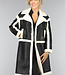Schwarzer langer Teddy-Mantel in Lederoptik