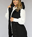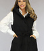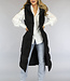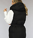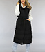 Diese wasserabweisende Weste hat lange Ärmel und ist gesteppt, was sie wunderbar warm macht. Die Vorderseite hat einen Knopfverschluss mit fünf Druckknöpfen. Außerdem hat sie eine Kapuze und einen Bund. An der Vorderseite befinden sich zwei Taschen mit Druckknopf und zwei Gürtelschlaufen, durch die man das mitgelieferte Taillenband fädeln kann.