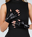 Diese schwarzen Handschuhe sind aus geschmeidigem Stretchmaterial mit Metallic-Glanz gefertigt. Sie haben ein kurzes Design mit halben Fingern, sodass Ihre Fingerspitzen frei bleiben. Der Stoff liegt eng an und ist leicht dehnbar, was für eine bequeme Passform sorgt. Ideal für Partys, Tanzabende oder Themenoutfits.