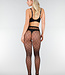 Diese Strumpfhose ist aus schwarzem Netzstoff mit offenem Karomuster gefertigt. Das Modell hat eine figurbetonte Passform und einen elastischen Bund. Die Netzstruktur erstreckt sich über die gesamte Länge der Beine und sorgt für einen transparenten Effekt, bei dem die Haut sichtbar bleibt.