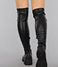 Diese Overknee-Stiefel in Lederoptik haben eine klobige Sohle und einen kleinen Blockabsatz. An der Innenseite des Fußes befindet sich auf halber Höhe des Schafts ein Reißverschluss, der ein einfaches An- und Ausziehen ermöglicht. Das Innenfutter besteht aus einem weichen Stoff, der im Winter für zusätzliche Wärme sorgt. Sie sind schlicht, so dass Sie sie leicht mit Kleidern, Röcken oder Hosen kombinieren können!