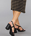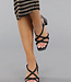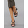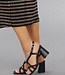 Diese Sandalen sind aus einem Material in Lederoptik gefertigt und haben einen Peeptoe. Sie haben einen stabilen Blockabsatz und quer über den Vorderfuß verlaufen schmale Riemen, die sich manchmal an verschiedenen Stellen kreuzen. Diese Riemen haben ein geflochtenes Design. Die Sandalen haben einen offenen Absatz und die Nase ist quadratisch.