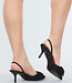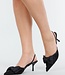 Diese Pumps sind schwarz und haben einen offenen Absatz mit Slingback-Riemen. Der Absatz ist mittelhoch und schmal. Die Spitze ist spitz und mit einer auffälligen hellrosa Schleife und einem Perlenmuster auf dem transparenten Obermaterial versehen. Das Material ist glatt und die Spitze hat ein dezentes florales Muster.