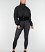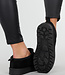 Schwarze Slipper mit Wildlederoptik und niedrigem Einstieg. Das Modell hat eine robuste, erhöhte Profilsohle und einen dezenten Zugrippen am Fersenbereich. Der Schuh ist mit sichtbaren Nähten entlang der Oberkante sauber verarbeitet und vollständig gefüttert. Die weiche Textur und die minimalistische Form verleihen dem Slipper ein klares, zeitloses Aussehen.