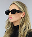 Diese klobige Sonnenbrille hat einen schwarzen Rahmen mit polierten Details an den Ecken des Rahmens. Die Brille hat eine ovale Form. Diese Brille ist perfekt, um sie auf einem Festival zu tragen!