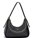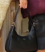 Diese schwarze Umhängetasche ist aus strukturiertem Leder gefertigt und hat eine glatte, leicht glänzende Oberfläche. Die Tasche verfügt über einen verstellbaren Riemen mit goldfarbenen Schnallen, sodass die Länge nach Wunsch angepasst werden kann. An der Oberseite befindet sich ein goldfarbener Reißverschluss, der für einen sicheren Verschluss sorgt. Diese Tasche kombiniert Funktionalität mit minimalistischem Design und ist perfekt für den täglichen Gebrauch.