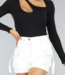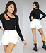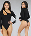Schwarzer langärmeliger Bodysuit mit Ausschnitt