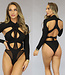 Schwarzer Bandage-Bodysuit mit Mesh-Details