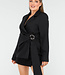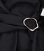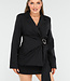 Dieser stilvolle schwarze Blazer ist aus einem feinen, robusten Stoff gefertigt, der sich angenehm auf der Haut anfühlt. Das Design umfasst einen auffälligen Gürtel, der mit einem großen goldfarbenen organischen Ring geschlossen wird, der für einen einzigartigen Twist sorgt und die Möglichkeit bietet, den Blazer nach Ihrem Geschmack anzupassen. Der Blazer hat lange, elegant fallende Ärmel und ein klassisches Revers, das dem Blazer einen formellen Look verleiht. Der Verschluss des Blazers ist für ein einfaches und elegantes Finish konzipiert.