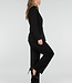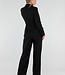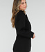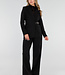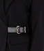Dieser Blazer ist aus einem einfarbigen schwarzen Stoff gefertigt und hat eine taillierte Passform. Das Modell hat lange Ärmel und einen klassischen Reverskragen. Auf der Vorderseite befindet sich auf Höhe der Taille eine feste goldfarbene Metallschnalle, die Teil der Konstruktion des Blazers ist. Der Blazer hat Pattentaschen auf Hüfthöhe und ist glatt verarbeitet.