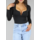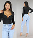 Schwarzer Bodysuit mit Gummizug und tiefem V-Ausschnitt