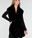 Dieser schwarze Bodywarmer ist aus weichem Kunstfell gefertigt und hat einen Kragen und eine gerade Passform. Der Gürtel in der Taille sorgt für eine taillierte Silhouette, während die versteckten Taschen subtil in das Design integriert sind. Das Futter ist glatt und bequem, ideal zum Tragen über einem Pullover oder Longsleeve an kälteren Tagen.