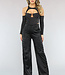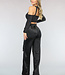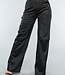 Diese schwarze Hose ist ein echter Hingucker! Die Hose hat einen elastischen Bund, ist hoch tailliert und hat weite Beine. Die Hose hat ein weiches Satinmaterial und coole Cargotaschen an den Seiten der Hose. Die Hose hat einen hohen Stretchanteil. Diese coole Hose ist ideal für einen Festival-Look!