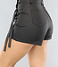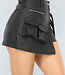Dieser Skort ist aus einem Stoff in Lederoptik gefertigt und hat einen hohen Stretch-Anteil. Außerdem hat er mehrere Taschen, Reißverschlüsse und eine Schnalle, die für einen coolen und funktionellen Look sorgen. Der Skort hat zwei kleine Pattentaschen auf der Vorderseite und Reißverschlüsse. Auf der Rückseite des Skorts befinden sich zwei Gesäßtaschen. Außerdem hat der Skort einen Gummizug in der Taille und fünf Gürtelschlaufen.