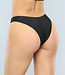 Dieses Bikini-Unterteil hat eine schwarze Farbe und ist aus einem glatten Stoff gefertigt. Dieses Bikinihöschen-Modell sitzt hoch auf den Hüften und lässt die Beine länger und die Taille schmaler erscheinen. Außerdem bedeckt das Bikinihöschen den Rücken gut, während es an den Seiten noch etwas Haut zeigt.