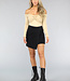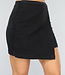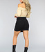 Dieser niedliche Rock ist aus einem Denim-Stoff gefertigt. Auf der Vorderseite des Rocks befindet sich eine niedliche Klappe. Auf der Rückseite hat der Rock zwei Gesäßtaschen. Die Überlappung hat einen Knopf, den man aufmachen kann. Unter der Klappe befindet sich ein Reißverschluss.