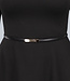 Dieser Gürtel ist schwarz und besteht aus einem Material in Lederoptik. Er ist in der Länge verstellbar und hat einen goldenen Schnallenverschluss.