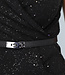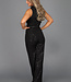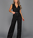 Dieser Jumpsuit ist ärmellos und hat ein gerades Beinmodell. Der Jumpsuit hat einen V-Ausschnitt mit umgeschlagenem Kragen. Außerdem hat der Jumpsuit einen verdeckten Reißverschluss an der Seite und Stretch, sodass Sie ihn leicht anziehen können. In unserem bekannten Glitzerstoff, mit dem Sie die Show stehlen werden!