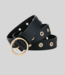 Schwarzer Gürtel mit runder Schnalle und goldenem Detail