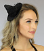 Stichworte: schwarzer Hexenhut, Themenhut mit Clips, Halloween, Punk, Gothic, Steampunk, Tüllschleife, Tupfenmuster, Partywear, Karnevalszubehör