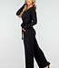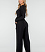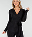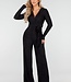 Dieser Jumpsuit mit V-Ausschnitt in Schwarz ist aus einem glitzernden Stretchstoff gefertigt. Der Jumpsuit hat lange Ärmel und einen Gürtel in der Taille für eine schöne Passform. Die geraden Hosenbeine sorgen für einen eleganten Look.