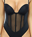 Schwarzer Korsett-Body mit Spaghetti-Trägern