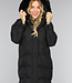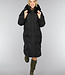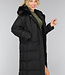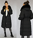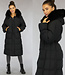 Dieser Wintermantel hat ein langes, übergroßes Design und hat lange Ärmel mit einem Band am Ende mit Druckknöpfen. Diese Bänder sorgen dafür, dass der Wind nicht durch die Ärmel dringen kann. Die Vorderseite hat einen Reißverschluss mit einer Klappe darüber. Diese Klappe wird mit Druckknöpfen geschlossen und verhindert ebenfalls das Eindringen von Wind. Sie hat eine Kapuze mit schwarzem Kunstpelzkragen, dessen Pelzkragen mit Knöpfen abnehmbar ist. Die Jacke hat zwei schräge Taschen und in der Taille befindet sich auf jeder Seite ein elastischer Kordelzug, den man bei Bedarf enger ziehen kann, um mehr Taille zu schaffen.