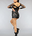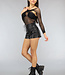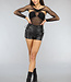 Dieser Body hat ein Fischnetzmuster und eine taillierte Form. Der Ganzkörperbody hat ein Netzmuster und Glitzersteine. Er hat lange Ärmel und eine Menge Stretch. Außerdem hat dieser Body als cooles Detail Cut-Outs auf der Brust und unter den Armen. Der Body hat unten keinen Verschluss, aber durch den Stretchanteil lässt er sich leicht an- und ausziehen.