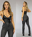 Schwarzer Bodysuit in Lederoptik mit verstellbaren Spaghetti-Trägern