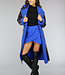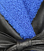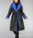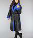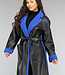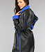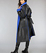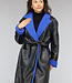 Schwarzer Leder-Trenchcoat mit blauem Teddyfutter