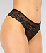 Dieser String ist aus Mesh gefertigt und mit Spitze versehen, wodurch er komplett durchsichtig ist. Da die Spitze elastisch ist, passt er gut und trägt sich sehr bequem.