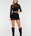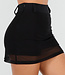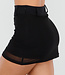 Dieser schwarze Skort hat eine hohe Taille mit Mesh-Verzierung. Der Skort verfügt über Gürtelschlaufen und einen verdeckten Reißverschluss an der Seite. Dank des Innenrocks sitzt er bequem und bleibt an Ort und Stelle. Hergestellt aus einem weichen, dehnbaren Stoff, der sich schön an den Körper anschmiegt.