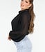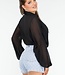 Schwarzer Body mit Overslag und langen Puffärmeln und Kragen