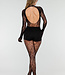 Schwarzer Mesh-Bodystocking mit Stretch und offenem Rücken