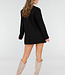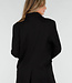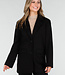 Dieser Blazer ist aus einem schwarzen, glatten Stretchstoff gefertigt. Das Modell hat eine gerade, oversized Passform, Schulterpolster und einen klassischen Reverskragen. Der Blazer wird vorne mit zwei Knöpfen geschlossen und hat zwei Pattentaschen auf der Vorderseite. Die Ärmel sind lang und gerade geschnitten und haben hinten einen Schlitz.
