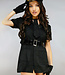 Dieses Kleid ist etwas kürzer geschnitten und hat kurze Ärmel. Vorne hat es einen Knopfverschluss mit fünf Knöpfen. Es hat zwei kleine Brusttaschen und zwei normale Taschen. Das Kleid ist mit mehreren Emblemen versehen. Die Krawatte hat ein elastisches Band, mit dem man sie um den Kopf legen kann. Die Mütze ist verstellbar. Dazu gehört ein verstellbarer Gürtel in Lackoptik, den man durch die beiden Schlaufen in der Taille stecken kann. Die beiden Handschuhe haben Finger und passen gut.