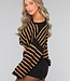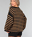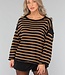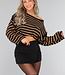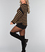 Der Pullover hat einen weiten Rundhalsausschnitt, so dass Sie ihn schulterfrei tragen können. Außerdem hat er lange Ärmel, die weit ausgestellt sind. Der Pullover hat ein Streifenmuster und ist schön oversized. Dieser Pullover ist ideal für die kälteren Tage!