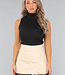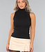 Dieses taillierte Oberteil hat einen Rollkragen und einen hohen Stretch-Anteil. Es ist ärmellos und besteht aus einem Rippstoff, wodurch es gut sitzt.